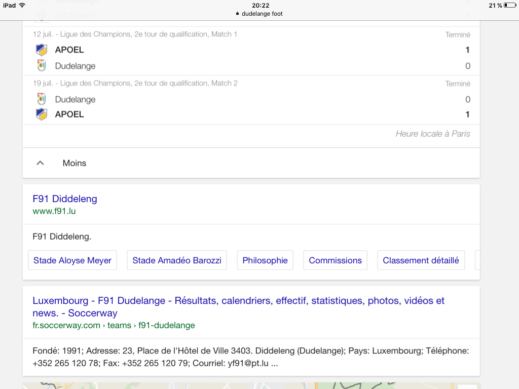 et le match a Dudelange de ce soir étant terminé, quelles informations pourraient t on recueillir ?