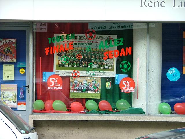 on parle d'heure maintenant la victoire est a bout de bras super les vitrines de sedan moi j'ai le petit ruban accroché a mon antenne et je souhaite bonne chance à nos joueurs. vive les ardennes et vive sedan