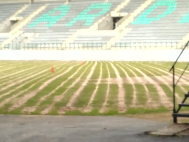 Je ne pense pas que changer 1/4 de la pelouse demanderait un report...A la vue de la photo, on jouera sur une pelouse neuve dès l'an prochain!!