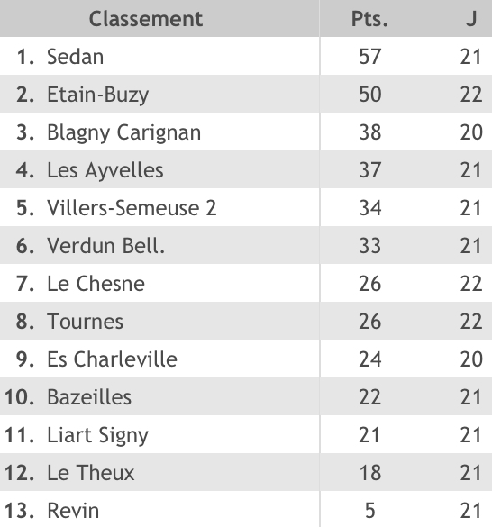 Mauvaise fin de saison pour Blagny qui a perdu 2 0 au chesne hier, ce qui fait 3 défaites sur les 4 derniers matchs